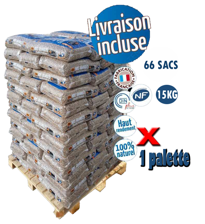 🔥 Pellets Woodstock Premium – Palette 990 kg (66 sacs de 15 kg) – Granulés de bois haut rendement